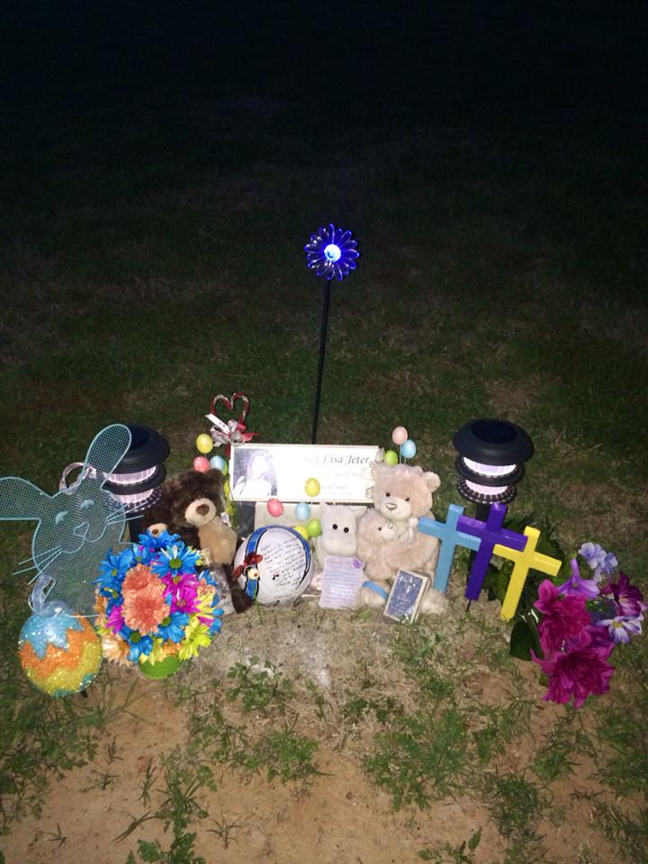 A bereaved parent will never be okay with living life without their child..there is nothing right about it..normal will never exist again as there is nothing normal about her being gone..tears don’t stop as a piece of me died that night with her..it is so hard to live without someone that was larger than life itself…in the midst of this horrible reality..my answer and my hope is from God alone🙏My baby girl left me that night but not to die instead to live waiting for me and everyone else she knew and loved that truly believes and is living this life focused on an eternity with an amazing God. She was living everyday not only loving God but reaching out and sharing him with others. I wanted whoever stops by to visit her to be reminded that as cute as the bunnies and eggs are the true reason for Easter is to celebrate the victory in Jesus that each one of us have…I painted and put in metal rods so that three crosses would stand to represent the Trinity (God,Jesus, and The Holy Spirit) my hope is knowing I will see her again..Love and miss you Sydney Lisa Jeter every second of everyday!