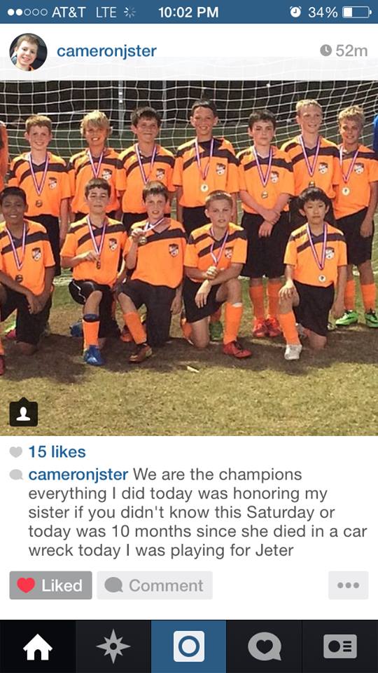 Today is Mothers Day and I’m missing Sydney. She was the one that made me a mom..my first born. The day you become a mom your whole life changes. You look into your babies eyes and you know your soul and heart are linked. A mothers desire is for nothing more than to help their child succeed and become the best they can be..I would have given up anything for my child. I didn’t carry around 400 dollar purses, I didn’t wear expensive clothes, didn’t have the most expensive cars, but I lived life and made all kind of memories with my kids..Just like your life changes the day your baby is born..your life will also change the minute you hear your child is gone. All your future dreams are shattered. Every single perfect memory is always missing something..its missing my baby girl..and I can never be okay with that EVER..God blessed me with two amazing children..two..and I was so proud of Cameron yesterday. He played his last soccer tournament of the season. I won’t steal his words you can read them for yourself as I’m attaching his Instagram post..I just couldn’t be more proud of him and I’m so thankful for the heart he has..our family has changed, his momma cries all the time, his Dad cries, he has also learned how awful a few people can be, they have hurt him also..but he continues to try and be the best he can be..and I realize how lucky I am to have such a sweet caring boy..His post brought tears to my eyes! We miss you Sydney Lisa Jeter😇Always and forever! We will forever carry you with us! #PlayforJeter